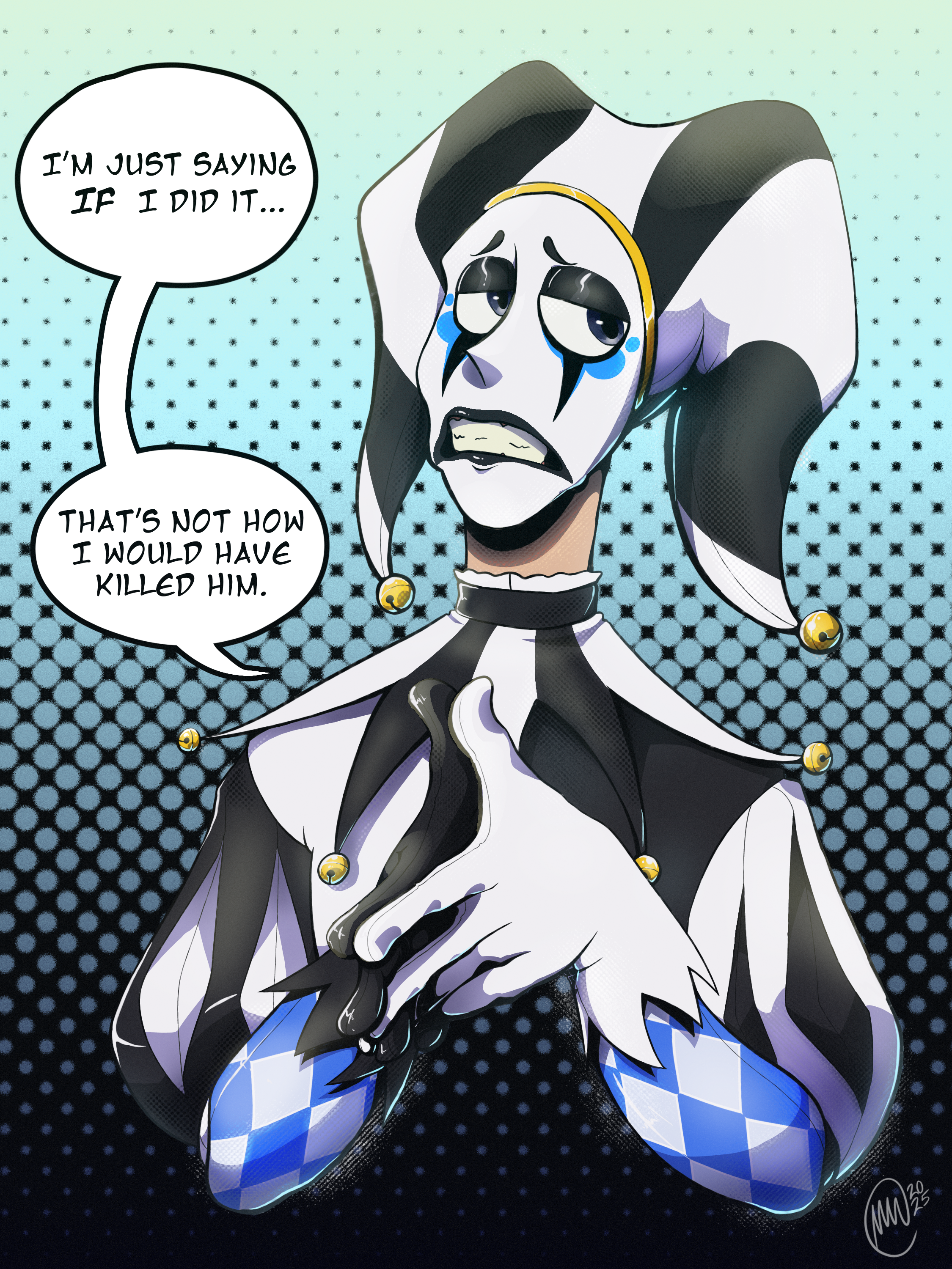 Frowny is a jester character that I thought up when I realized I didn’t have a jester character yet. He ended up being another experiment in exaggerating expressions and continuing to refine a rendering style.